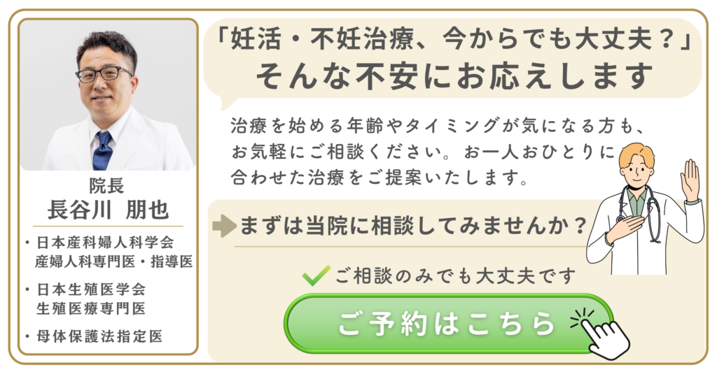 月経不順や過去の婦人科疾患がある場合、パートナーに精子の問題が疑われる場合なども、早期の相談が望ましいです。「もう少し様子を見てから」と考えているうちに、治療開始が遅れてしまうケースも少なくありません。