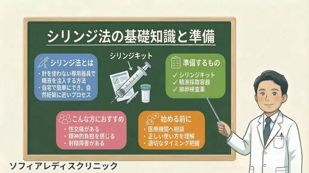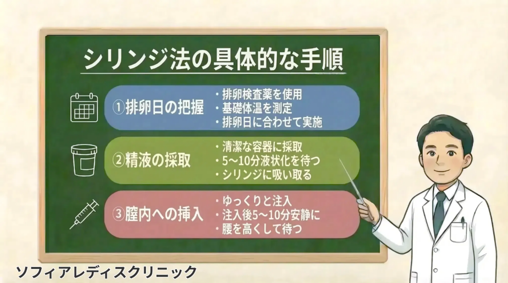 シリンジ法の基礎知識と手順について、以下の内容を解説します。